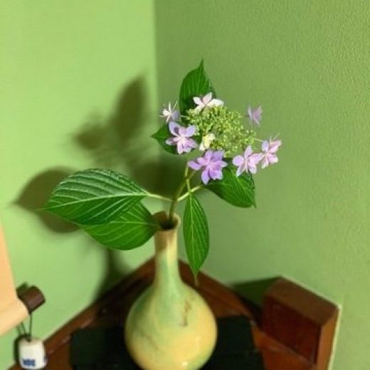 昨年、境内の紫陽花の強剪定をしました。 今年の花は少な目で、ちらほら咲いています。 そのかわり、葉っぱがとても元気で生き生きしています。
